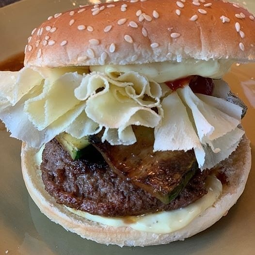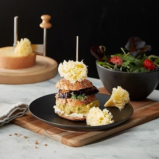 Если бы мы открывали бургерную, то этот бурегер был бы там обязательно в центре внимания. Великолепный сыр Тет де Муан. Этот сыр поражает не только своим вкусом, но и необычным внешним видом. Сыр нарезается специальным ножом - жиролем. Задача этого ножа как можно тоньше нарезать сыр, а сама нарезка - это удивительное зрелище. В нашей сырной лавке можно приобрести как сыр, так и специальные ножи для резки. Как показывает практика, при правильной подаче и с хорошим вином - головка сыра скручивается за вечер. А вы пробовали этот необычный сыр?