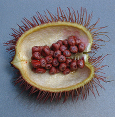 Естественный пищевой краситель, получаемый из семян так называемого «помадного дерева» (Бикса орельяна), которое произрастает в Центральной и Южной Америке. Семена слегка островатые и немного напоминают мускатный орех.