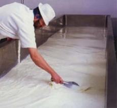 Первый этап производства сыра: перемешивание молока, закваски, фермента и, как в случае со Стилтоном, спор голубой плесени.[/caption]