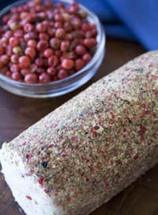 Козий сыр цилиндрической формы, покрытый зернами розового перца[/caption]