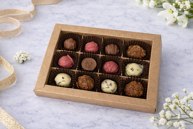 Все трюфели — ручной работы, из качественного бельгийского шоколада, натуральных сливок и отборных сыров.