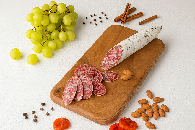 Пряная салями с экзотическим характером и ярким вкусом.