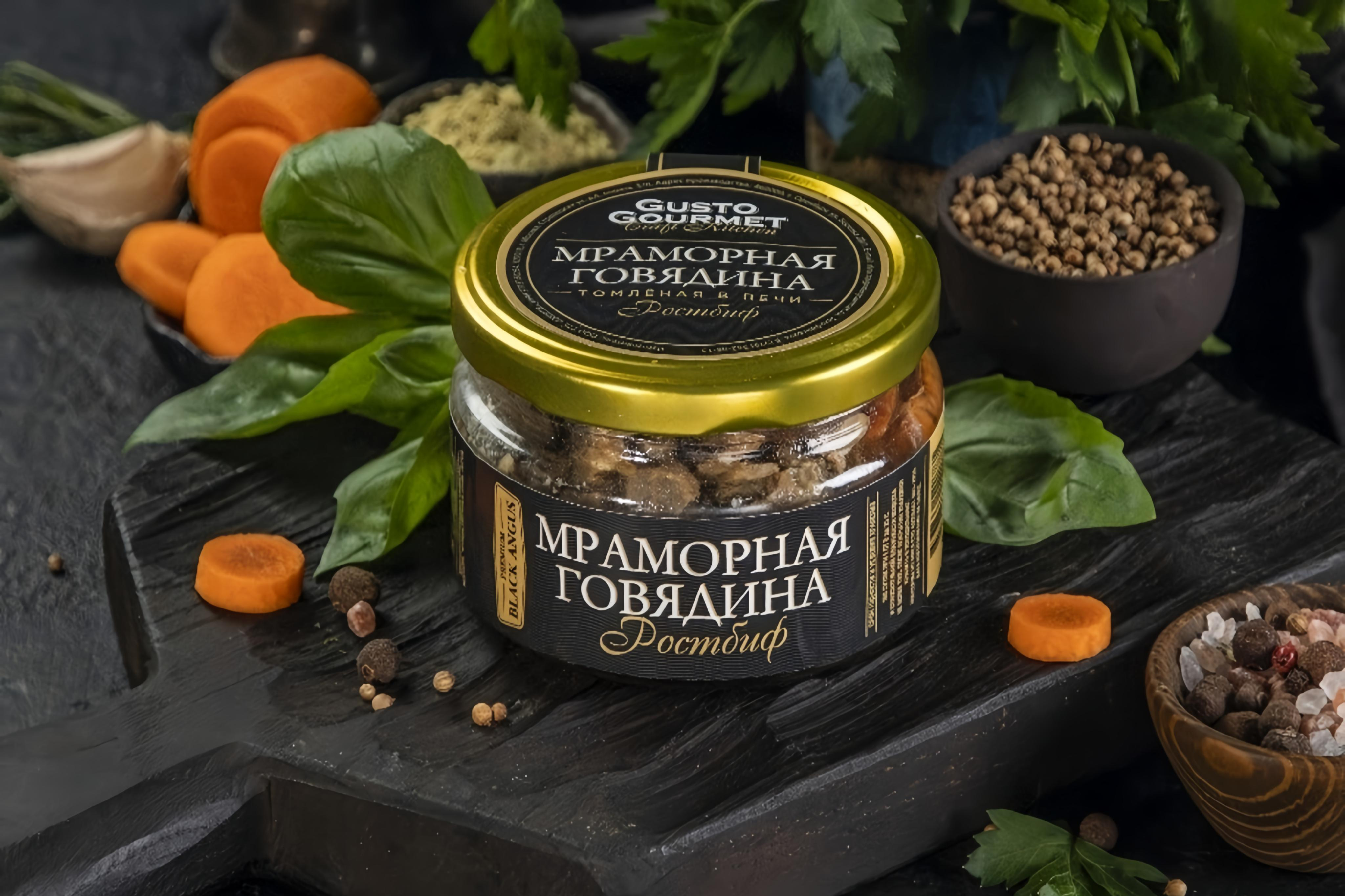 мраморная говядина, морковь, чеснок, горчица, чёрный перец и соль.