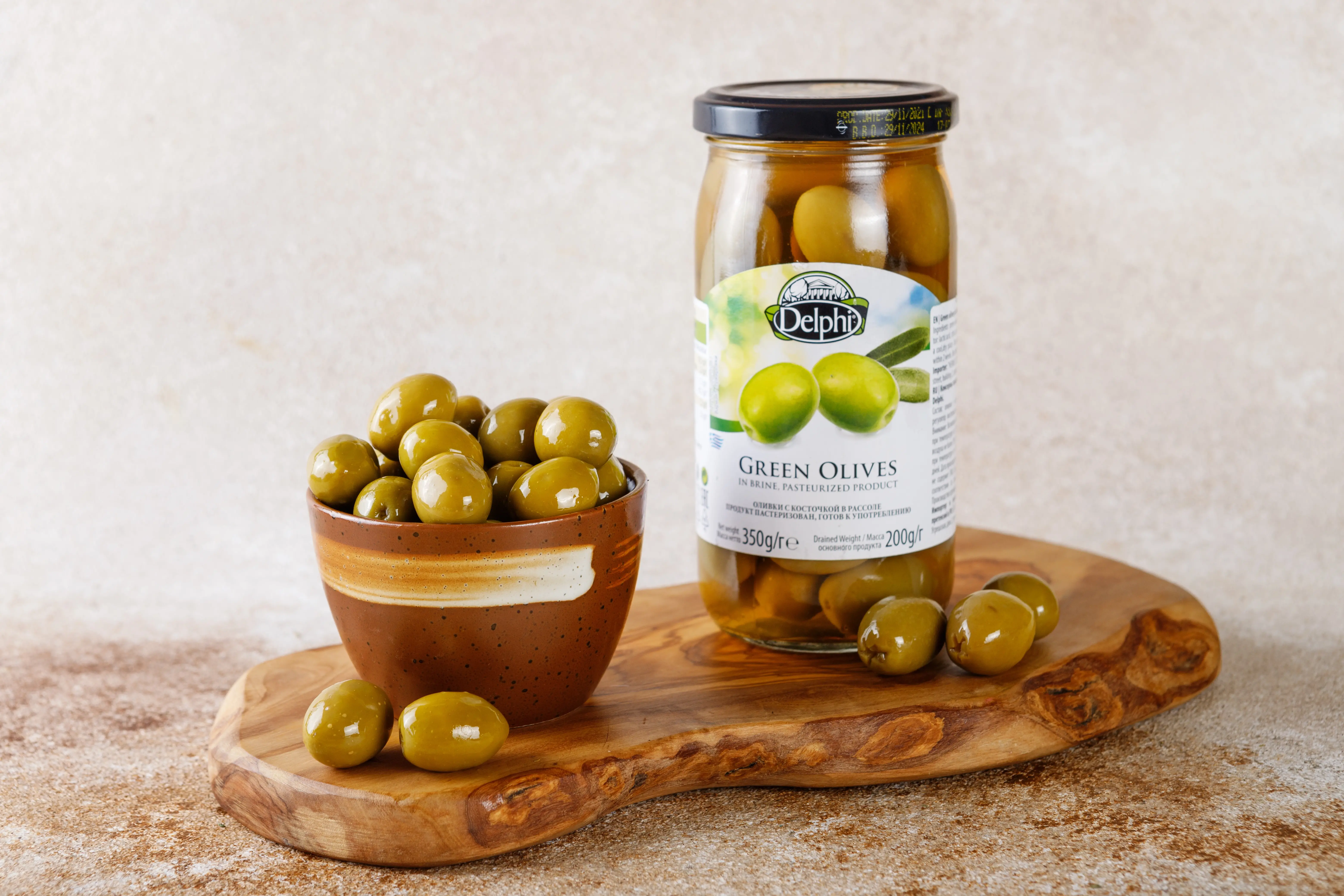 Оливки Delphi с косточкой — мясистые, упругие, с естественной солоноватостью и лёгкой терпкой ноткой. Косточка сохраняет вкус более глубоким и цельным — таким, каким его задумывает природа.