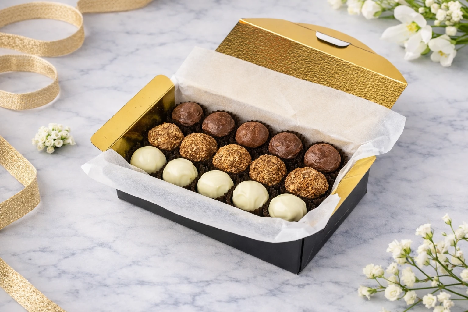 💡 Перед подачей рекомендуем достать конфеты из холодильника и дать им немного согреться при комнатной температуре — так вкус станет мягче и глубже.