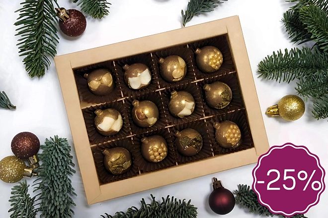 ✨ Шоколадные ёлочные шарики из специальной новогодней коллекции — маленькие сладкие сюрпризы, которые создают настроение с первого взгляда. В основе — нежный молочный бельгийский шоколад 🍫, а внутри — хрустящие карамельные шарики со вкусом солёной карамели, которые приятно потрескивают при каждом укусе. Мы добавили воздушный маршмеллоу ☁️ и кусочки печенья «Орео» 🍪, чтобы вкус получился ярким, игривым и по-настоящему праздничным.