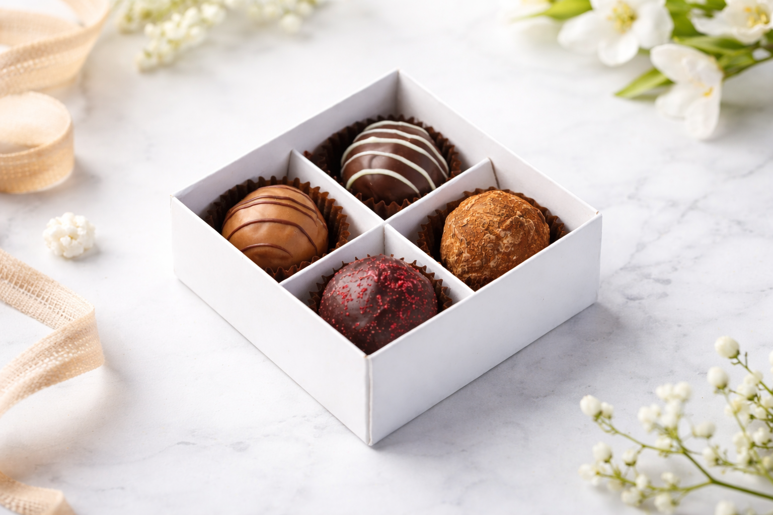 В наборе — 4 авторских сырных трюфеля ручной работы от Larka Chocolates, где шоколад встречается с выдержанным сыром и создаёт неожиданно гармоничный вкус.