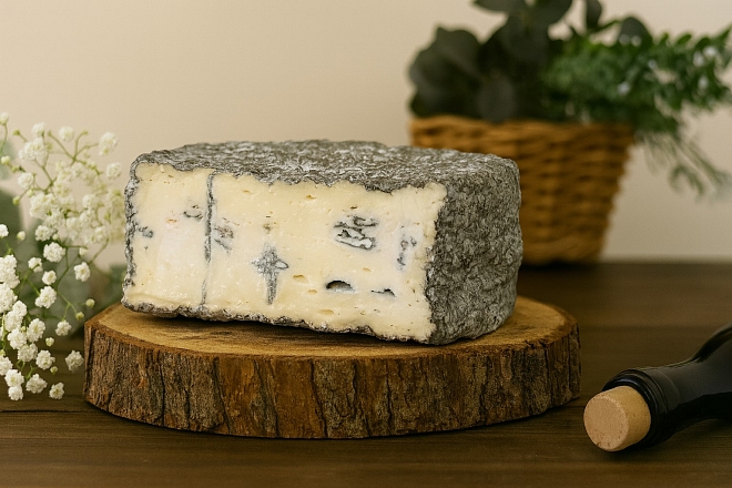 Нежный голубой сыр с мягкой сливочной текстурой, лёгкой сладостью и тонким ароматом.