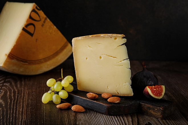 Выдержанный сыр с ореховыми и карамельными нотами, плотной текстурой и ярким вкусом.
