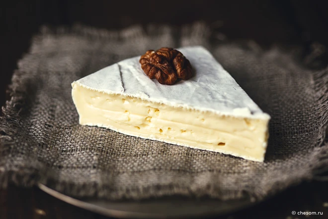 Мягкий сливочный сыр с белой плесенью и бархатной корочкой — идеален к багету и фруктам.