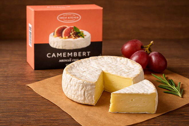 Нежный камамбер с бархатистой корочкой и сливочно-грибным вкусом для уютных вечеров.