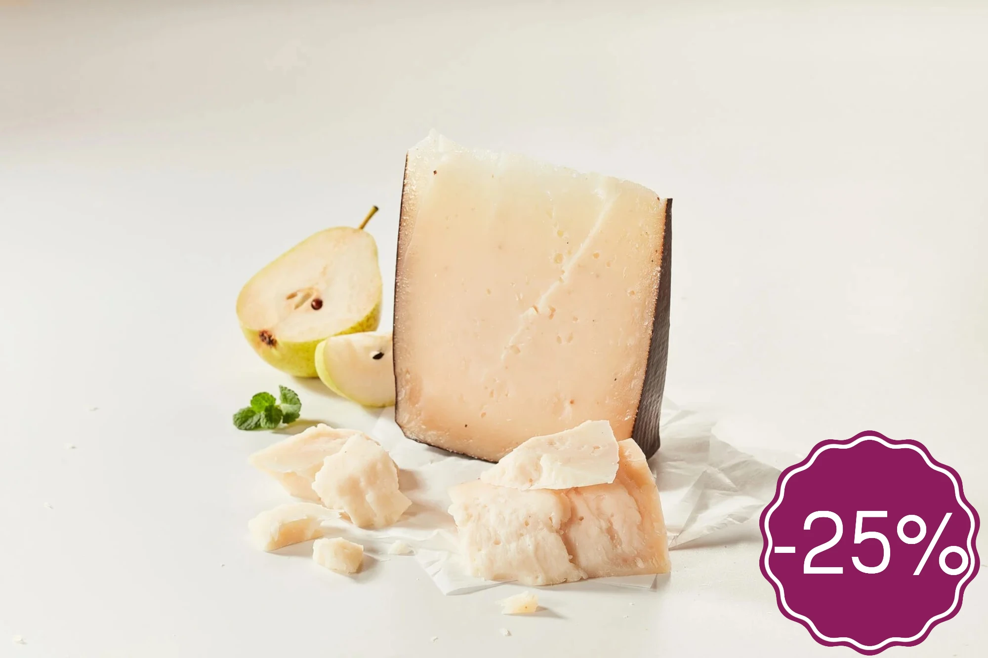 Выдержанный сыр с ореховыми и карамельными нотами, плотной текстурой и ярким вкусом.