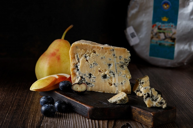 Полутвёрдый сыр с голубой плесенью — сливочный, пикантный, с насыщенным вкусом.