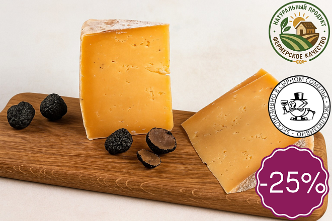 Сыр из коровьего молока с натуральными кусочками чёрного трюфеля выдерживается не менее 6 месяцев, за счёт чего вкус становится плотнее и многограннее.