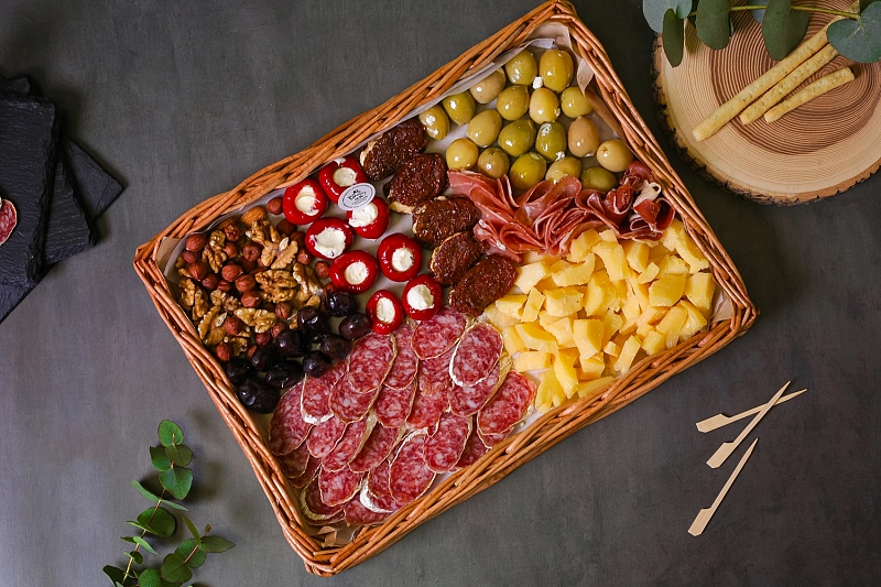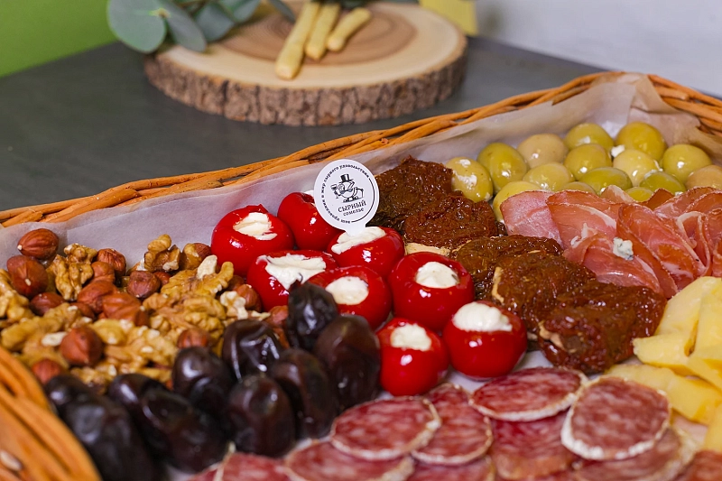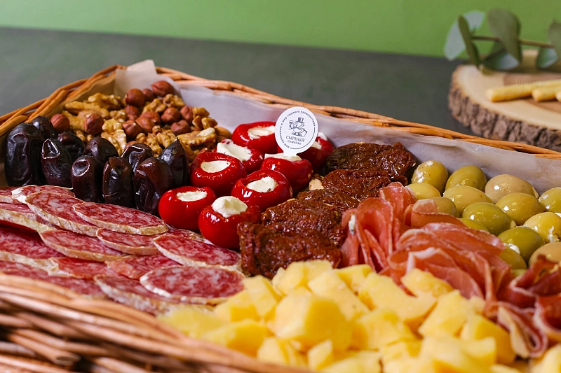 В наборе на четыре человека собрано примерно 1000 г сырно-мясной гастрономии