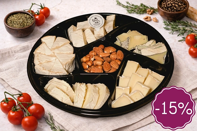 Сыры укладываются в менажницы с глубокими отсеками, которые не позволяют продукции перемешаться между собой.