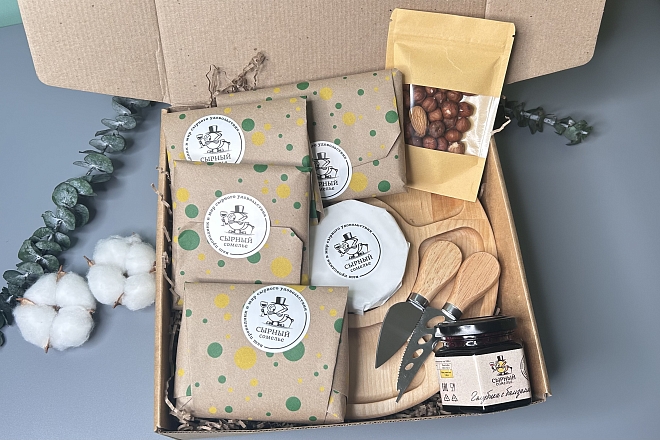 3 вида сыра (пармезан, грюйер, чеддер), фирменный шоколад "Сырный сомелье", набо... еще
