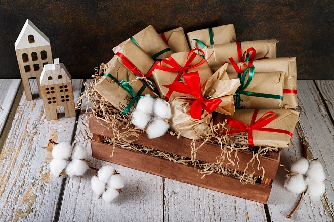 Набор приедет в деревянном ящике, упакованном в прозрачную пленку.