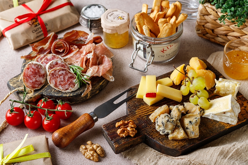 Нежная мясная нарезка, подобранная так, чтобы гармонично сочетаться с мягкими сырами 🥩💛.