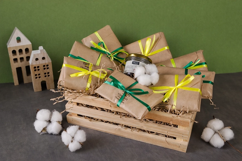 Набор приедет в стильном деревянном ящике, аккуратно упакованном в прозрачную плёнку.